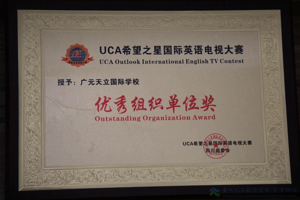 热烈祝贺广元天立国际学校在UCA希望之星国际英语电视大赛中被授予“优秀组织单位奖”