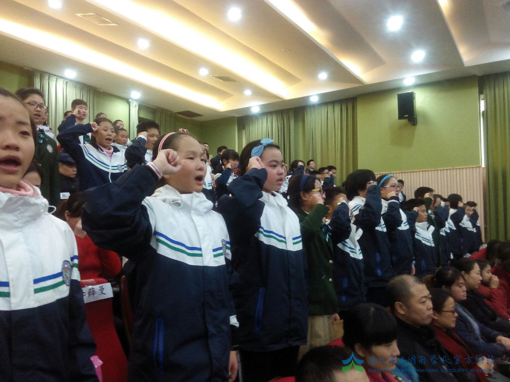 孩子的成长最让父母欣喜,集体宣誓环节,初中部全体同学举起他们的右拳郑重地向父母许下誓言。“要尊敬父母,决不自宠独尊;要爱怜父母,决不负心冷漠......”没有华丽的词汇,没有刻意营造的煽情,在场的父母却已热泪盈眶,感动他们的是他们尚且稚嫩的孩子此刻脸上的坚定。