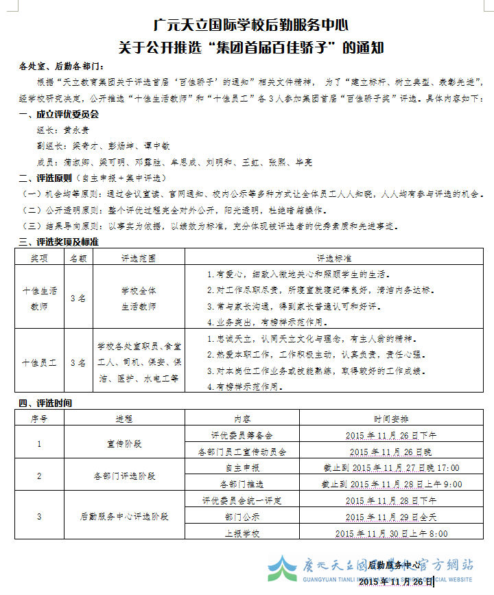 广元天立国际学校后勤服务中心 关于公开推选“集团首届百佳骄子”的通知