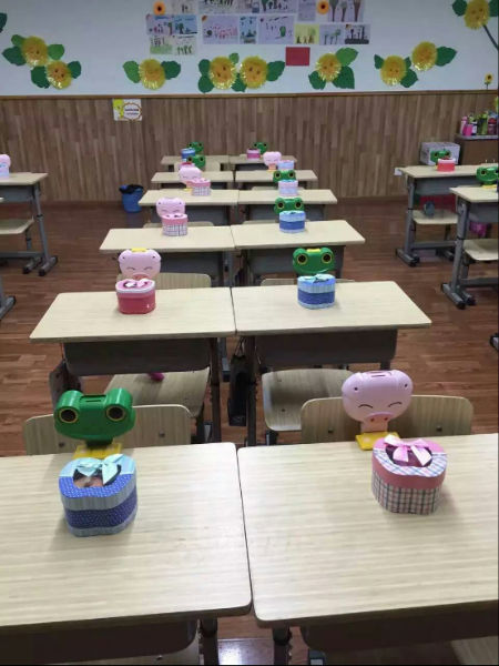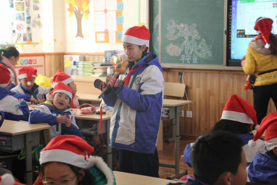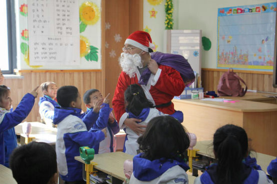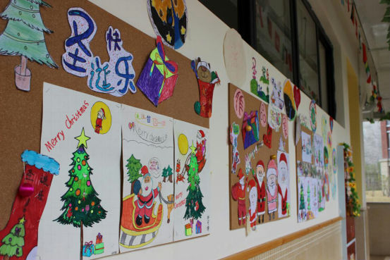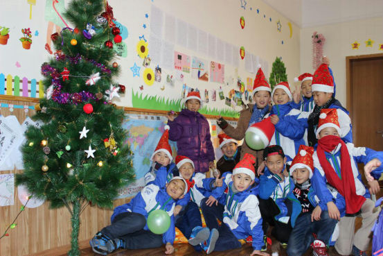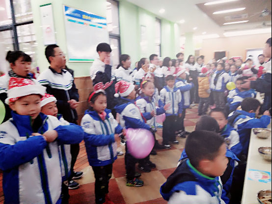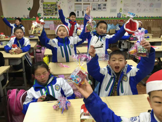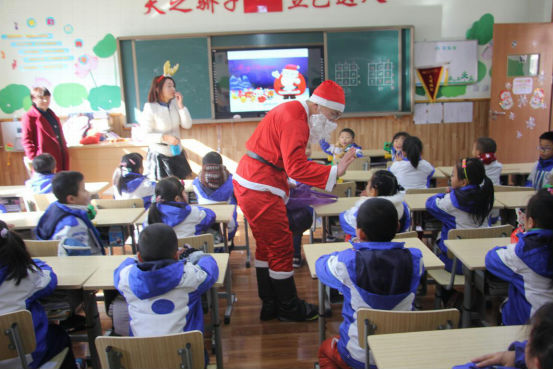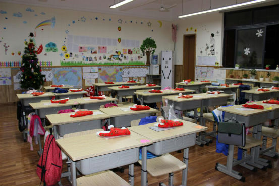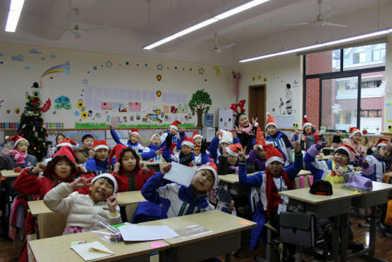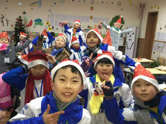 清晨迎着阳光,孩子们沿湖走到教室。一进门,孩子们就惊喜地发现,自己的课堂上竟放着圣诞礼物!他们迫不及待地拆开小礼物,开心地读着老师的亲笔祝福。戴上可爱的小帽子、小鹿角,整个学校恍若一片童话的王国,有的小朋友说:“这就是我心里面的童话教室”,有的同学说:“老师,你看一群红色帽子的小矮人来袭!”更有同学激动地抓着老师的手说:“我还从来没有正式过过圣诞节呢!Merry Christmas!”。
