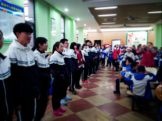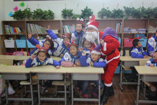 临近课尾,突然冒出了真正的圣诞老人说着一口流利的英文和孩子们开心的玩耍起来,孩子们手舞足蹈地纷纷要求合影留念,也表示喜欢这样节日活动,同时也学到了很多英文表达,印象深刻地了解了西方传统文化!真好!