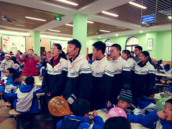 在王晨老师的带领下,高中部的哥哥姐姐们趁小学部的孩子们吃饭时,出乎意料地在食堂就开展了一场国际流行的“快闪”行为艺术,现场的孩子、老师以及食堂叔叔阿姨们纷纷被这突如其来的惊喜所感染,跟着一起high起来,根本停不下来。低年级的孩子们更是纷纷放下碗筷,走到哥哥姐姐的队伍中,大胆自信地跳起《青春修炼册》韵律操,节日欢快喜庆的气氛在这里迸发。