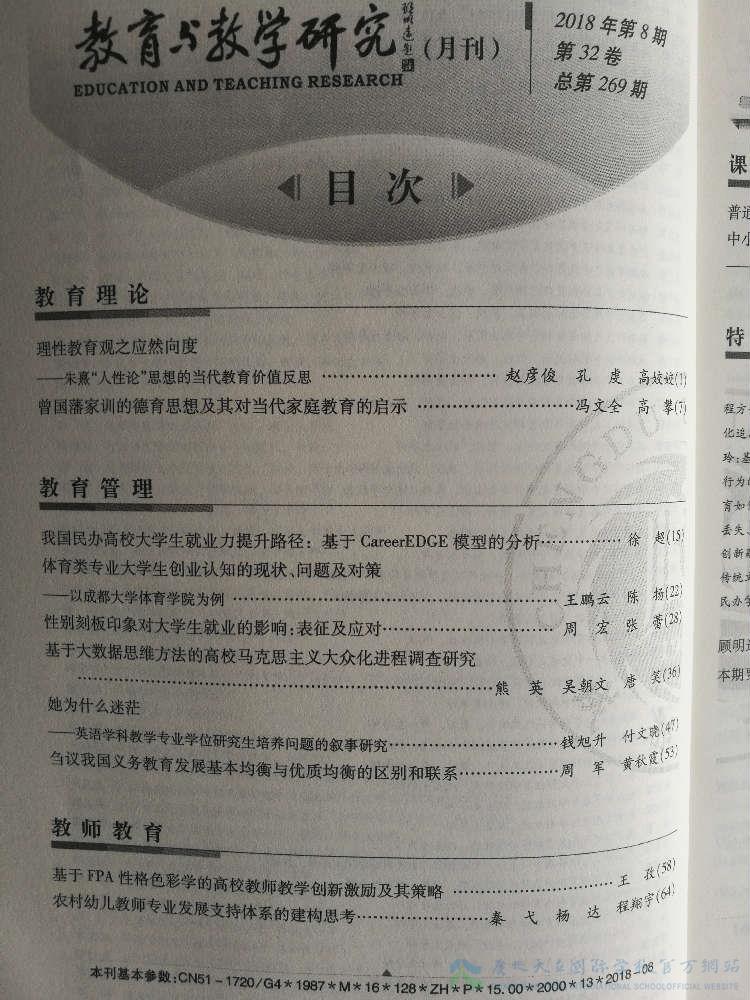我校国际理解教育文章在成都大学《教育与教学研究》第8期刊发