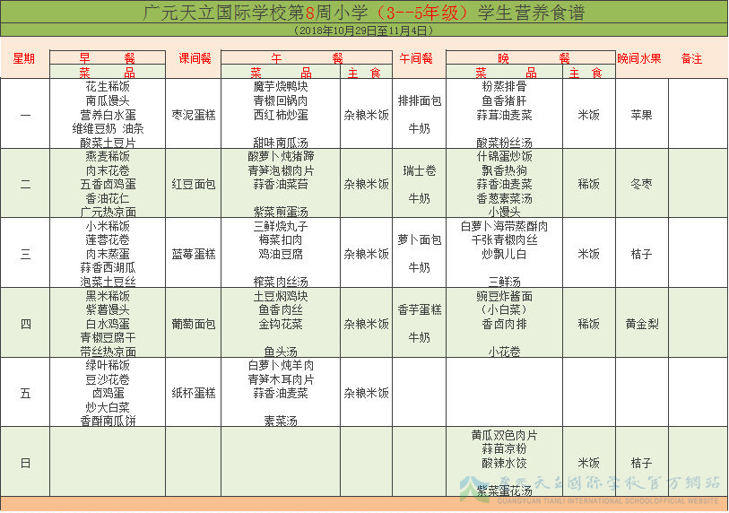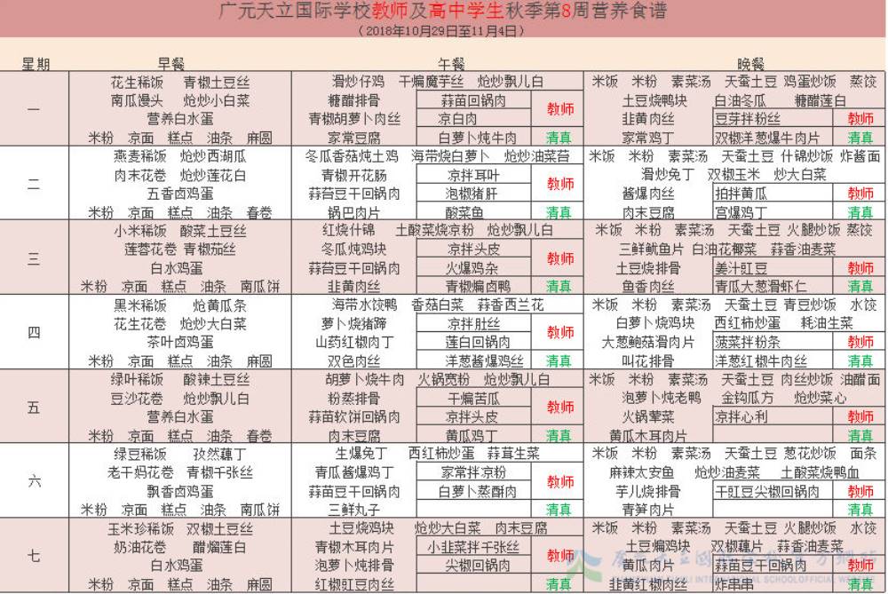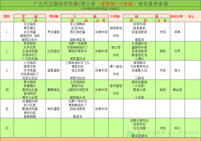 膳食中心第8周菜谱