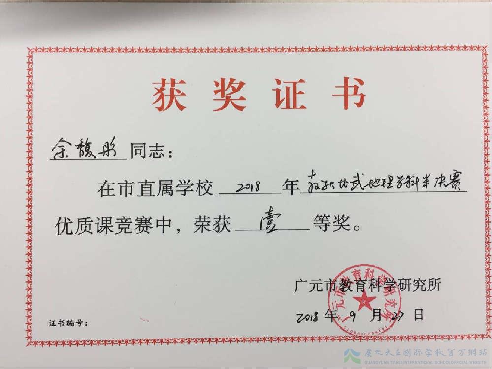 近日,广元市市直属学校2018年教学大比武学科优质课半决赛获奖结果公布,经过激烈的角逐,我校高中部王晨、余馥彤、谭成老师斩获一等奖,杨洁、徐小平、周江丽、尹娇老师相继获得二等奖。