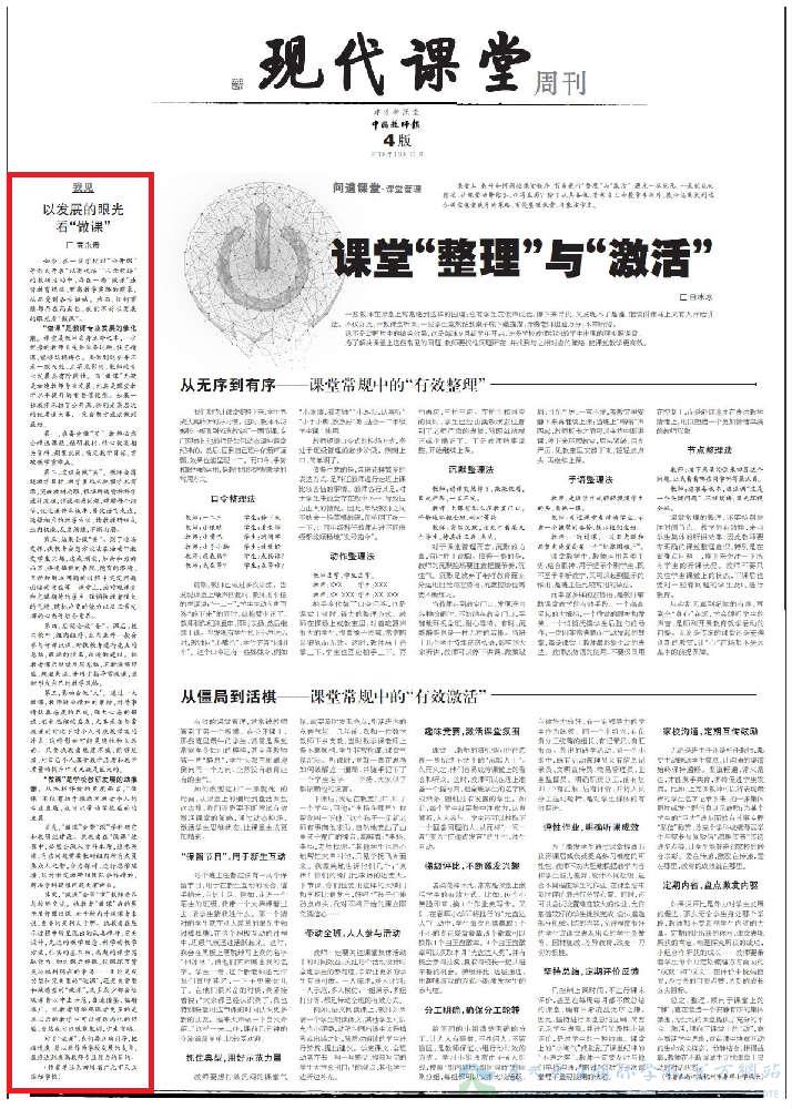 近日,我校总校长黄永贵撰写的教研管理文章《以发展的眼光看“做课”》在中华人民共和国教育部主管、中国教育报刊社主办的《中国教师报》第4版“现代课堂”周刊栏目刊发。
