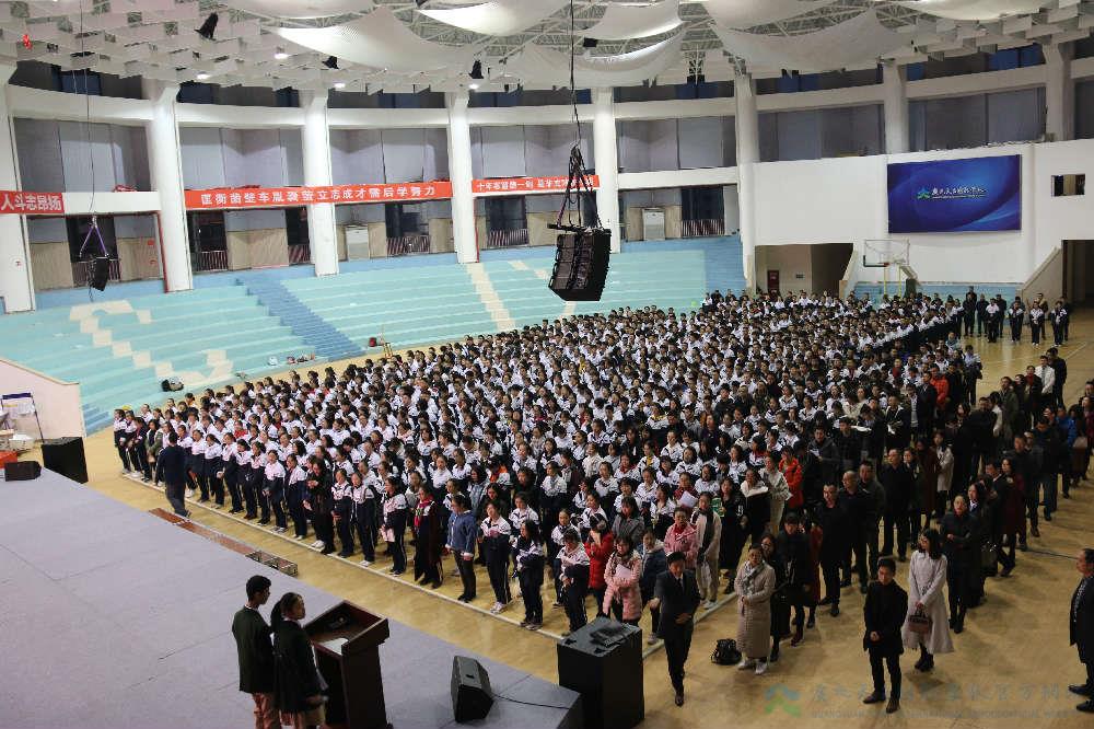 11月12日,我校高中部第九周升旗仪式在体育馆准时举行。本次仪式由高一·三班学生组织,沈爱颜、李东阳同学主持,高中师生集体参与。