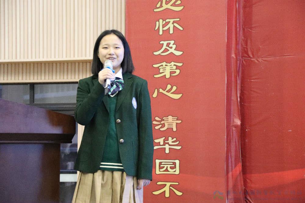 其后,高一·三班张可同学进行了以“师生间的礼仪——尊重老师”为主题的演讲。他列举了杨时、华罗庚、鲁迅等名人尊师的事例,并以此引导同学们在学习与生活中尊重师长,以提高自身修养,利于全面发展。演讲结束之际,张可同学向一直栽培自己的师长表达了最诚挚的敬意,并传达了自己对同学们终将成为栋梁之材的深深祝愿。