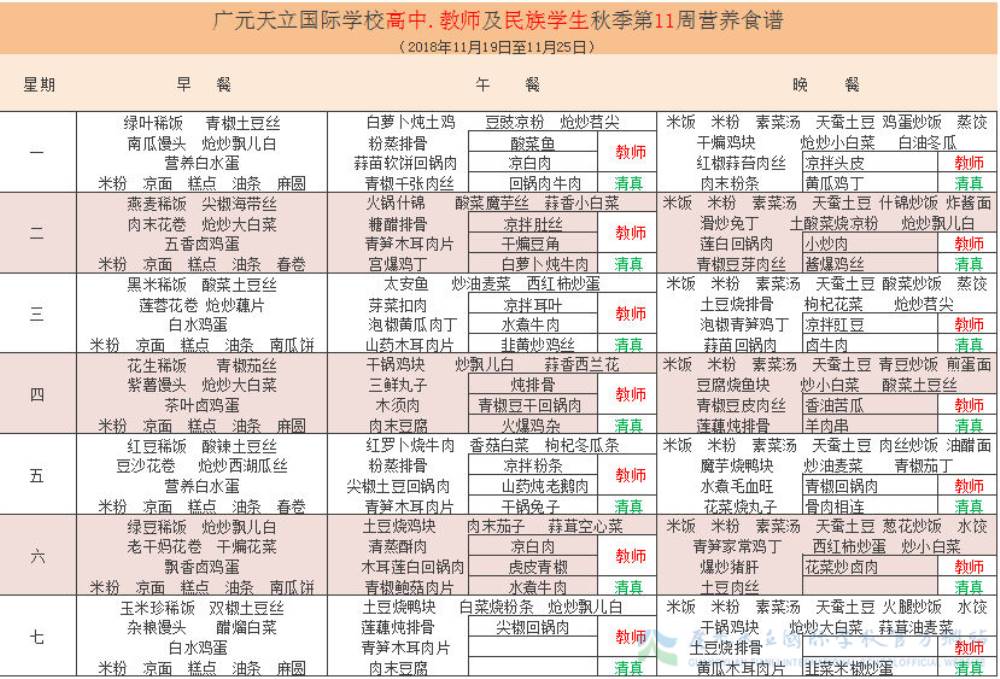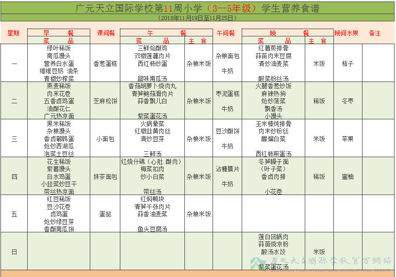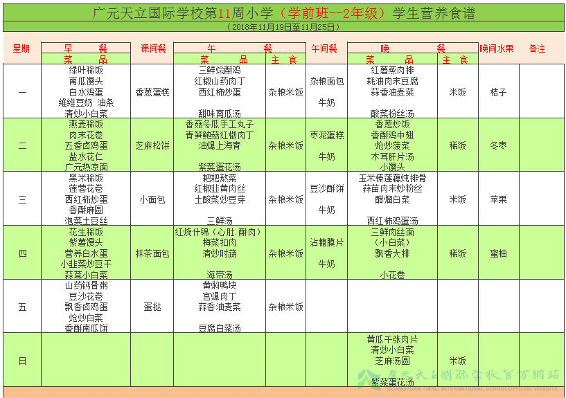 膳食中心11周菜谱