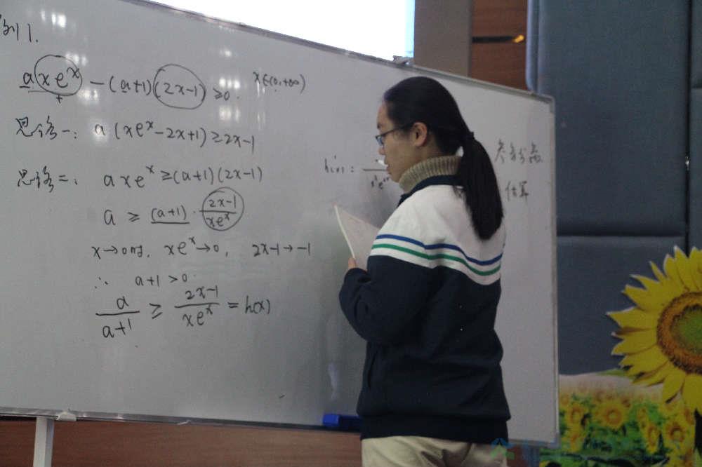 27日上午,课堂教学观摩活动在学术厅准时举行,首先执教的是来自广元天立的文小兵老师,其课堂主要围绕导数中的恒成立与有解问题进行,重点剖析参变量分离技巧。凭着深厚的数学功底与扎实的教学经验,文老师引导学生探究多种解题思路,并在对比分析中不断优化解题办法,从而获取最优思路。教学过程中,文老师还不断在关键处拓展延伸,在逐步深入的解题进程中丰富了课堂教学。学生深入思考,积极互动,在学习与答疑中收获颇丰。