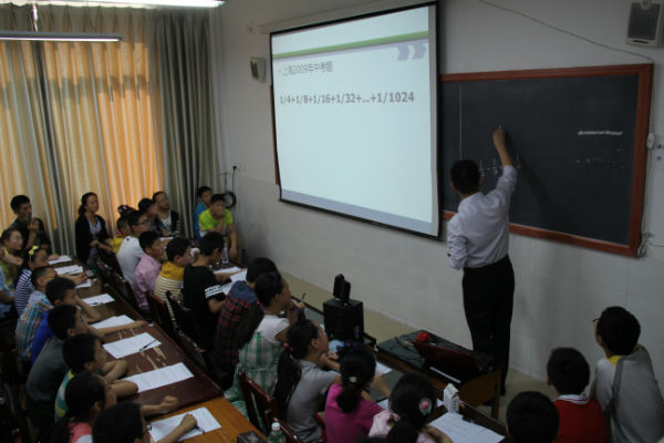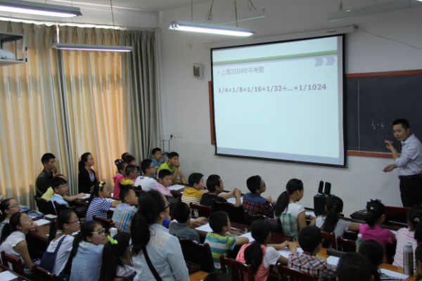 在随后的第一节数学课上,康老师以2009年上海中考一道极富挑战性的数学计算题为学材对同学们进行了高强度的思维训练,对小学还未毕业的同学们来说,中考题对他们来说难度虽然太大了,但在康老师循序渐进的点拨启发和同学们的共同努力下,大家还是很快计算出了正确的结果。第二节课是习题课,题量和题目难度虽然都很大,但是有了前一节课的很好铺垫,大多数同学还是完成了既定的学习任务。