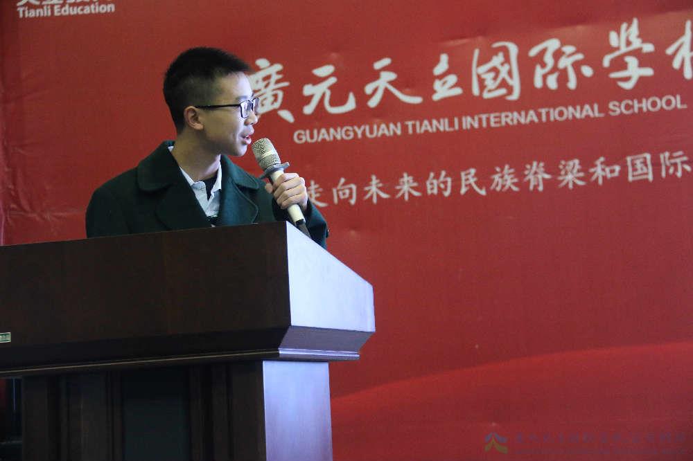 其后,李浩同学进行了以“大事与小节”为主题的演讲,他以蔡伦造纸与甲午战争为例,说明成大事的同时,当注意小节,以“一屋不扫何以扫天下”的誓言呼吁大家树立远大志向,同时关注生活细节。