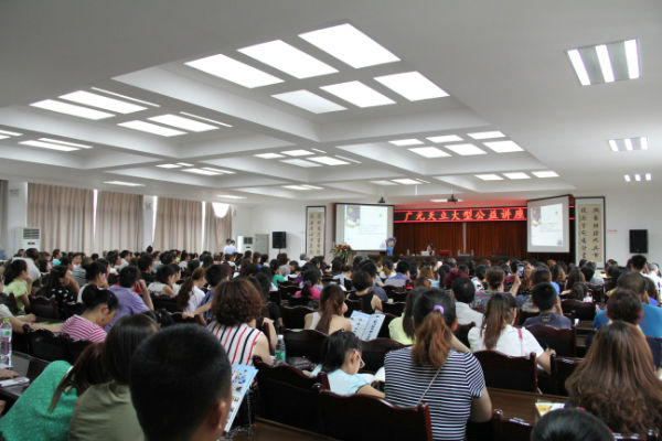 为破解这一教育难题,提高家长的教育力,为孩子的全面、充分、和谐发展提供360度护航。应广元天立国际学校特别邀请,6月7日上午,四川省特级教师、四川省有突出贡献专家、成都市教育专家、成都市“十大教坛明星”、成都市十大杰出青年、成都草堂小学校长蓝继红莅临广元,做客我校筹备组所在的广元电大为广元带来了一场题为“陪伴孩子,参与成长”的精彩学术报告。来自全市四县三区的部分学生家长、老师、幼儿园园长、小学校长共350余人有幸听取了这场大型公益讲座,现场目睹了这位曾受国务院前总理温家宝接见的美丽校长的出众风采。讲座由广元天立国际学校黄永贵总校长主持。