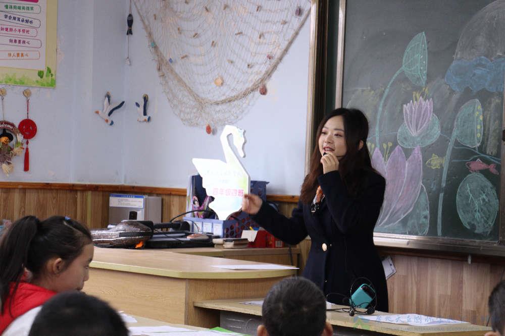 宋林曦老师课堂:学英语,本就应该在玩中学。宋老师在游戏闯关的过程中,不仅激发了学生的兴趣,还达到了学习重点词句的目的。在教学过程中,宋老师善用鼓励,充分调动学生的积极性,让学生真正成为课堂的主人。在课堂教学中采用即学即演的方法,鼓励孩子们用角色扮演的形式,将所学对话在具体情境中进行表演,做到理论联系实际。同时邀请家长们参与课堂,和孩子们一起玩游戏,让家长们切身体会孩子在学校里的成长点滴。