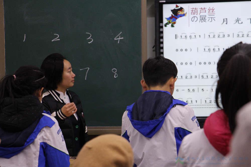 邓琴老师课堂:邓老师的这堂课将由全体家长作为学生,体验天立学校上音乐课的感觉,回忆小时候。首先由学生先展示学习成果《月光下的葫芦丝》《金孔雀轻轻跳》《小苹果》三首曲子,展示完毕后学生为家长带上红领巾,体验之旅就开始了。家长先了解葫芦丝的构造,吹法,识谱,然后就自己的孩子教爸爸妈妈吹奏123三个音,训练完毕后,家长展示吹奏《我有一只小羊羔》。