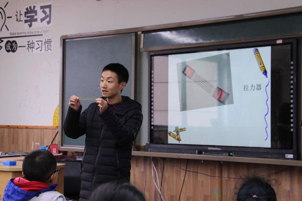 叶坤老师课堂:科学的实践探究《测量力的大小》让孩子们在动手操作中学习弹簧测力计的基本原理,掌握使用方法。在教学过程中,让孩子动手操作,测量身边物体的重力大小,做到理论和实践相结合。这样调动了学生积的极性,家长也和孩子一起参与进来,和孩子进行有趣的测量活动,体验到孩子的成长。