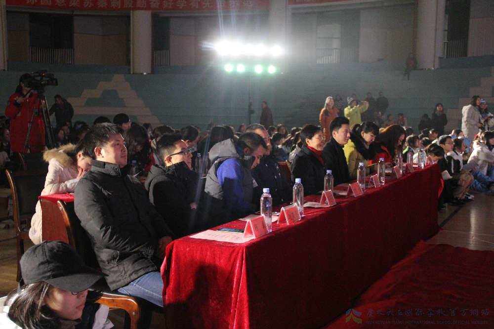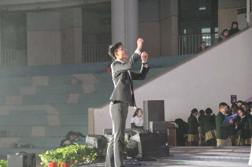 红色在眼,乐声盈耳;讴歌时代,唱响未来。12月9日晚,我校高中部第四届纪念“一二·九”学生运动红歌合唱比赛在体育馆热闹上演,学校党总支书记兼副校长薛述容、高中部校长范玉钦、学校总校长助理兼工会主席叶强等领导莅临现场,川信之声合唱团黄伊航老师特别出席,音乐组全体教师荣当评委,高中部所有行政及高一、高二师生集体参与。本次比赛由梁小姿 、王钟强、向一夫、张子萱四位同学主持,共14支队伍参加,合唱曲目纷繁,形式不一,现场气氛热烈。