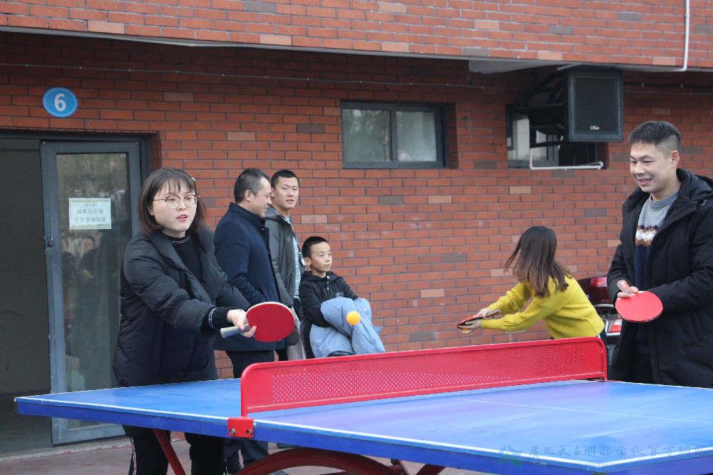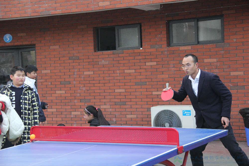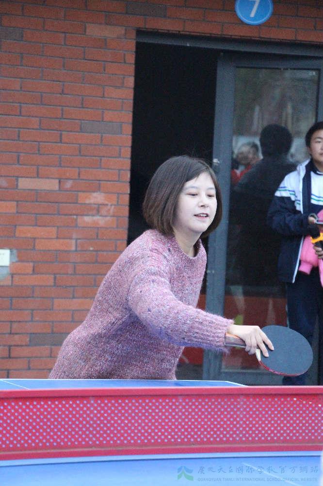 在个人比赛中,老师们或辗转于乒乓球桌,以严肃之态对待,用心经营着桌面的“对抗”,以自信之姿挥拍,暂将纷扰遗忘在球桌之外。或停留在刻度线外,等待立定跳远。他们踢腿甩臂,充分准备,打算集全身之力一跃而前,跳向理想的位置。或集结在软垫处,用仰卧起坐的方式证明着自己平日的锻炼成果……