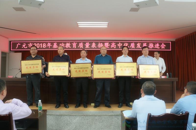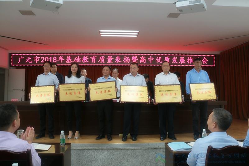 2018年广元市基础教育质量表扬暨高中优质发展推进会上,我校共荣获“2018年市直属学校高考质量先进集体”、“2018年高中教育质量考核特优培养先进集体”、“2018年高中教育质量考核竞赛指导先进集体”、“2018年高中教育质量考核拔尖人才培养先进集体”和“2017—2018学年度基础教育质量考核一等奖”五项大奖。