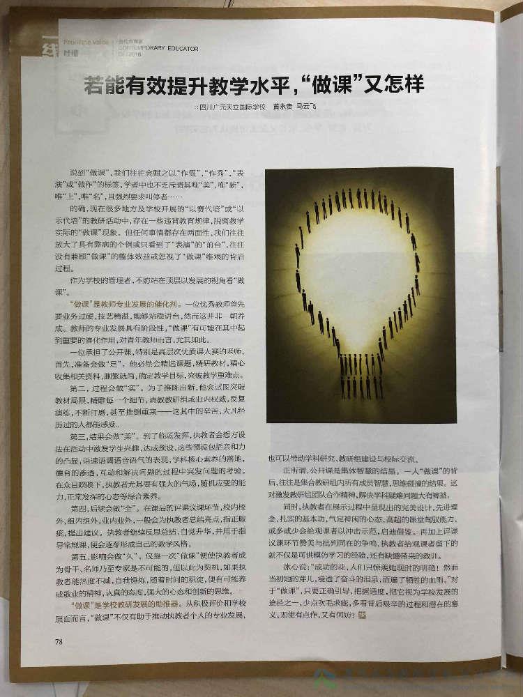 除此之外,他不断加强自身学习与教育教学研究,勤于笔耕,大量课题、论文和经验文章在国家、省、市级刊物发表、获奖或作大会交流。