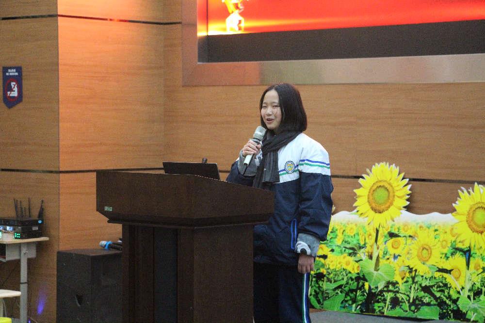 获得本次月考总分第一名、来自高一3班的贺丽君同学向同学们分享了自己的学习心得。首先,她认为学习对我们每一位高中生而言都至关重要,它决定了我们以后就读大学的层次和等级。其次,她认为诚信可以成为一种习惯,并阐述了诚信考试的重要性和必要性。最后,她希望大家在接下来的一个月中,继续努力,不忘初心,在期末考试中取得更加辉煌的成绩。