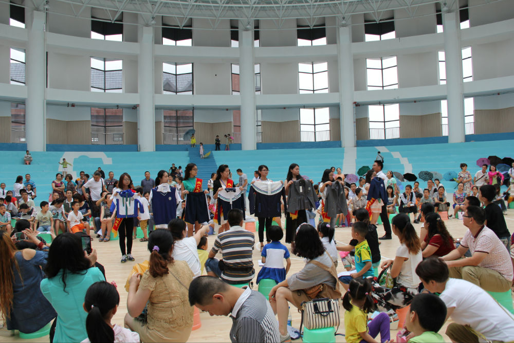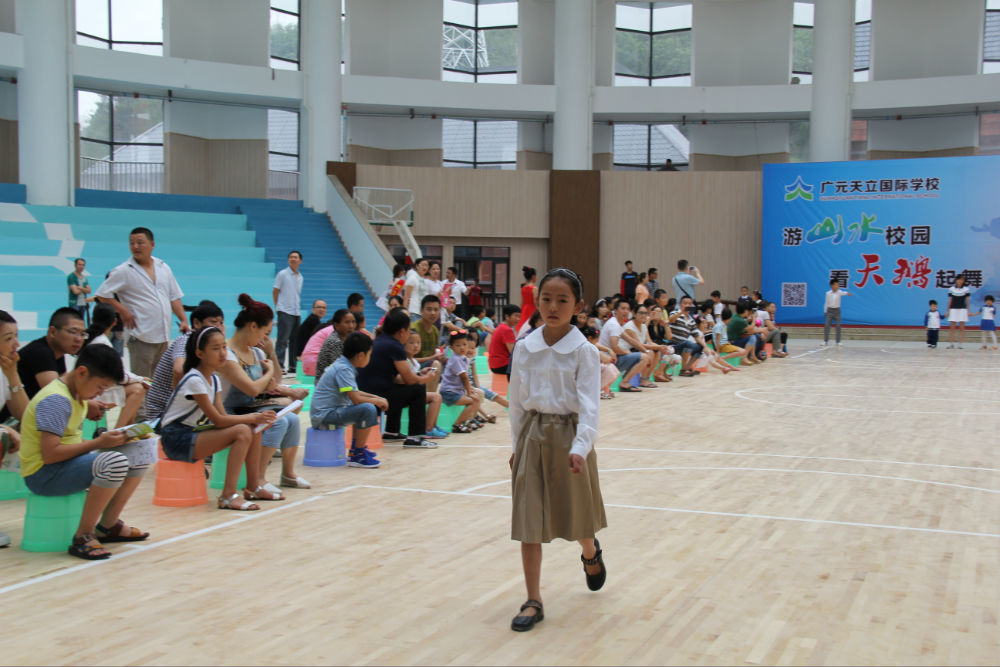 当天上午,虽然天空细雨霏霏,校门外的道路较为难行,但不作美的天气却丝毫阻挡不了大家参观天立美丽校园的热情,一大早,我校校门口就聚集了一大批满怀渴望与憧憬的学生和家长。经向导员热情引导,上午9点半,大家有序集结在活动第一站——艺体楼二楼大厅参加了活动启动仪式。参观启动仪式上,我校黄永贵总校长作了激情致辞,他对冒雨前来参加活动的广大学生及家长表示热烈欢迎,并预祝本次活动取得圆满成功。数名天立小学生身着天立校服进行了即兴时装表演,他们有模有样的时装秀充分彰显了天立学子的特有风采。在观看完我校艺体老师精心准备的精彩藏舞、街舞、武术表演、古筝合奏后,活动进入今天最重要的环节——参观天立魅力校园。在导游们的引导和解说下,大家有序参观了小学运动场、中学运动场、篮球场、教学楼、观景平台、天立湖、学生公寓和膳食中心。参观过程中,大家无不被学校周到的服务、优美的校园环境、高端的内部配置所深深吸引和打动,欢声笑语响彻校园每个角落。