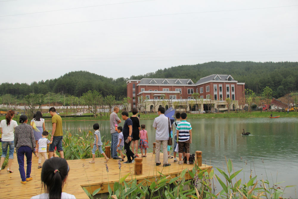 “哇,好美好大的湖呀,好绿好绿的湖水,还有美丽的黑天鹅,听说过两天还会有一对漂亮的白天鹅,我真想去抱抱它、喂喂它!”一位小学生开心地向导游老师说到。