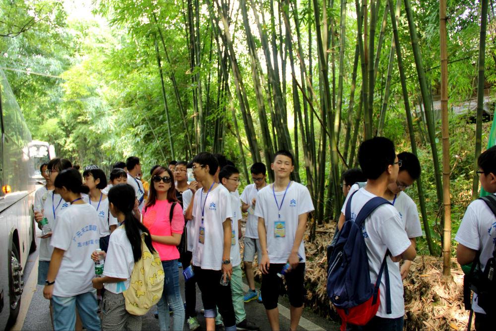 在青山绿水间穿行,浮躁与疲惫一洗而空,同学们畅谈理想,分享心得,有的还玩起了成语接龙的小游戏,一路欢笑。同学们始终保持着昂扬的精神状态,在细节处展现出较高的素养,不乱丢垃圾,不大声喧哗,悉心照顾晕车的同学…… “天地有大美而不言”,同学们在苍翠竹海里,感受到大自然造物的神奇;在幽静山涧中,更体会到先民巧夺天工的奥妙!