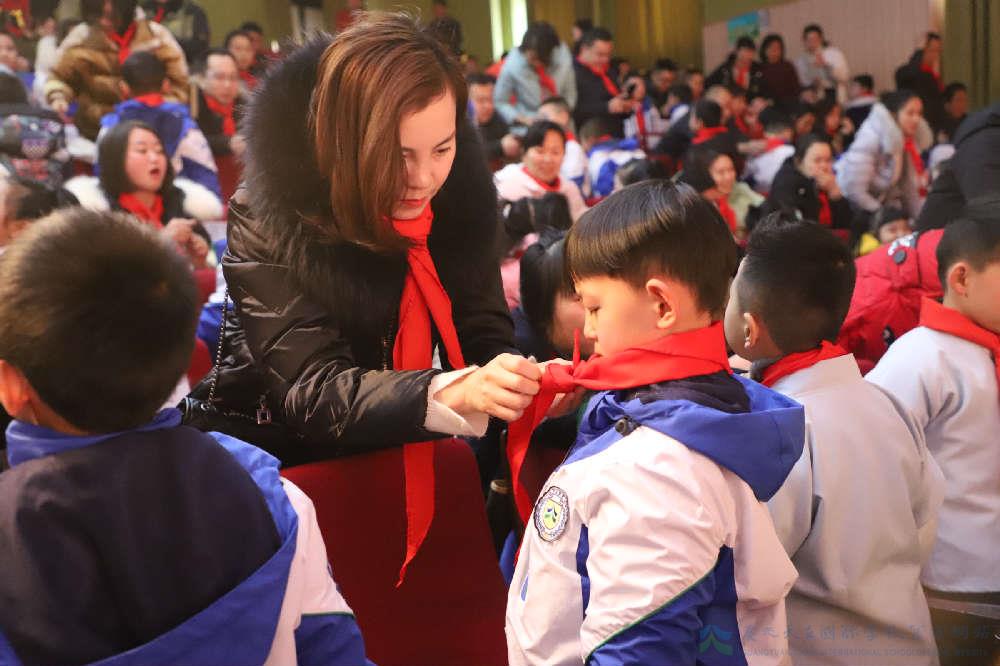 接着,小学一年级团支部成立,由我们家长给自己的孩子戴上红领巾,看着他们参加入队仪式。儿子几天前仿佛还是那个刚出生的小婴儿,一眨眼就上了幼儿园,一眨眼现在小学一年级第一学期也快读完了,还戴上红领巾,加入了少先队,作为妈妈,我的心情是难以言表的。教育孩子任重道远,我感谢在这一过程中所有帮我分忧解难的老师和有缘人。