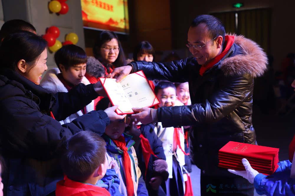 2018年12月29日,天立小学一年级全体师生和家长在学术报告厅隆重举行了“我们共成长”入队仪式。薛书记、俸校长、汤校长、杨校长出席了本次活动。