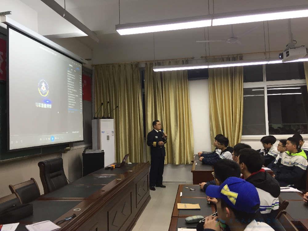 报告中,戴教授向同学们详细介绍了海军潜艇学院的发展历程和学校概况。他说,海军潜艇学院是国家军队重点建设高校,始建于1953年,至今已有60多年的历史。学校地处海滨城市山东青岛,是中国海军潜艇和防险救生部队军官、士官和士兵的摇篮。2017年,学院升格为军事高等教育院校,将建设全军顶尖、世界一流的军事院校作为办学目标。60多年来,学院为潜艇和防救部队培养了近10万名军事指挥和专业技术人才,其中近100名成长为共和国将军,并涌现出一大批军事科技专家,为70多个国家培养了1000余名留学生和水上救助打捞管理官员,同时学院水兵方队曾3次参加首都国庆阅兵典礼。