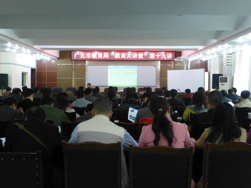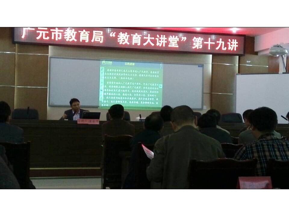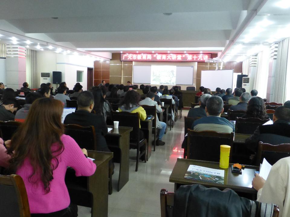 2014年10月31日,广元市教育局“教育大讲堂”第十九讲活动在教育局一会议厅如期举行。广元天立国际学校总校长黄永贵作为此次活动的主讲人,在大会做了以 “荟有梦想的团队、办有影响的学校、做有灵魂的教育”为主题的专题报告。出席本次会议的有广元市教育局机关领导干部、利州中学、广元外国语学校、零八一中学、大东英才、川北幼专、广元中专、机关幼儿园等21个学校的领导,共计一百余人。