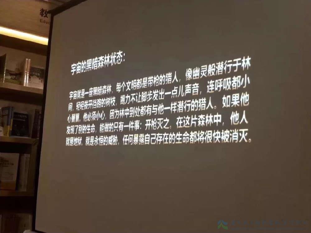 这是参加“相约星期三”以来最烧脑的一次读书会,却也是最为精彩的读书会之一,这个夜晚每个在场的人都被杨老师讲的《三体》故事所吸引了。