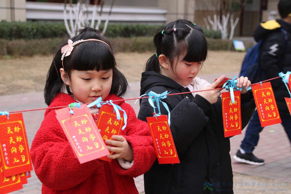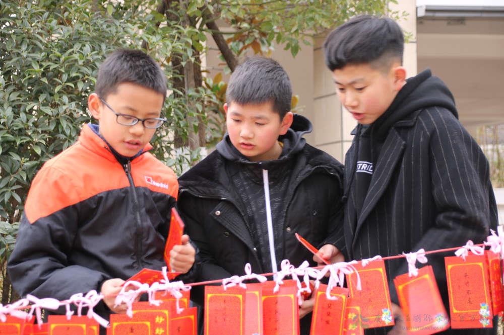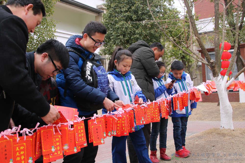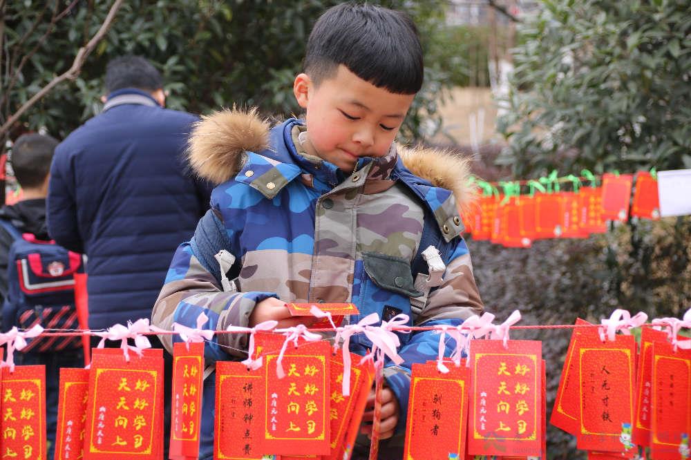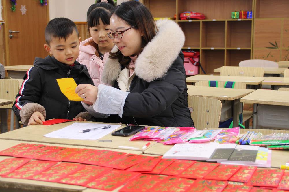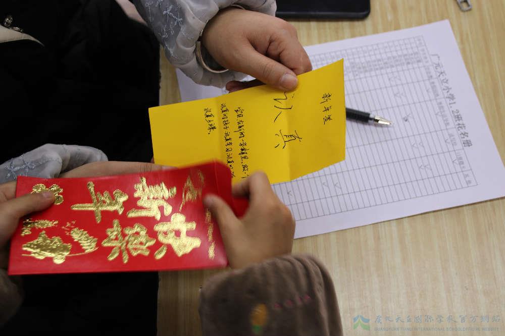 除此之外,有些细心的老师还特意为孩子们准备了“大红包”。可是这大红包里装的可不是压岁钱哦。瞧!它们是一张张精美的新年心愿签,每一个心愿签上都是老师精心从孩子们即将要学习的课本中找到的“品行词”,不但让孩子们提前学习生字,同时也道出了新学期老师对每个孩子不同的希望。