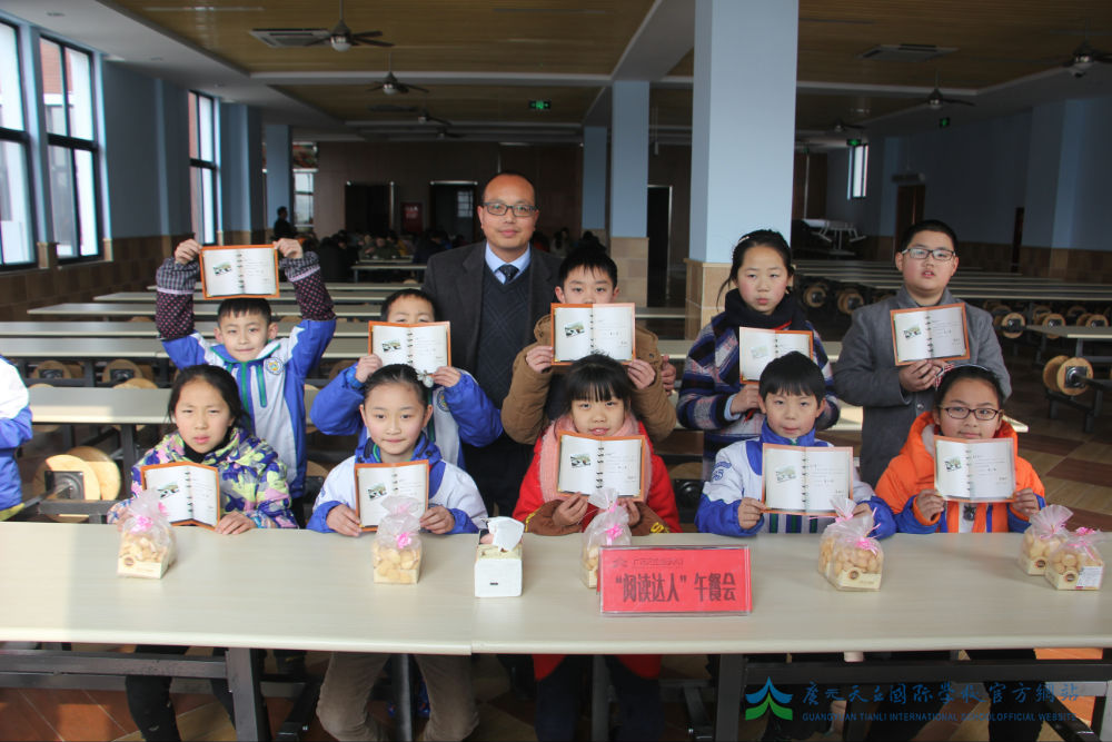 你是否期待获得精美的图书、可口的点心,甚至与校长共进午餐、探讨人生;你是否渴望在充满书香的校园里自由阅读,舒展你的精神和思维;你是否梦寐和阅读大师为伴,在书籍的海洋中尽情遨游……在广元天立国际学校小学部,这些都一一变成了现实。1月15日,20名获得两次以上“阅读达人”称号的同学受邀参加“阅读达人”午餐会,与小学部俸耀旭、程思文两位校长共进午餐,享受物质粮食和精神粮食的双丰收。