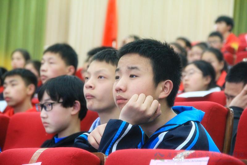 讲座正式开始前,薛书记向同学们简要介绍了我校先进的文化理念、丰实的“六立一达”校本课程体系、强大的管理团队、豪华的师资阵容和高远的办学目标及显著的办学业绩,让同学们对广元天立有了更深的了解和认识。