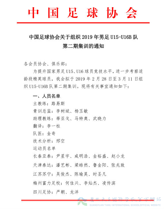 重磅九:我校首批足球队员高一年级严朝同学作为四川仅有的两位队员之一,继去年进入国家男足U15集训队后,今年二月再次入选!