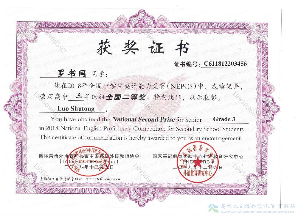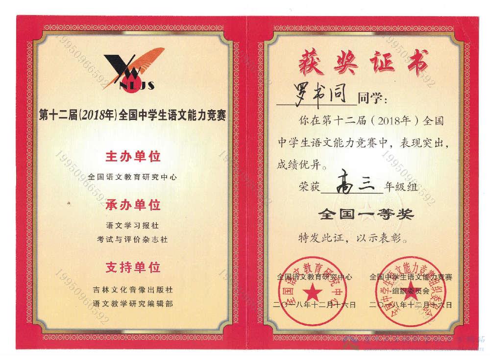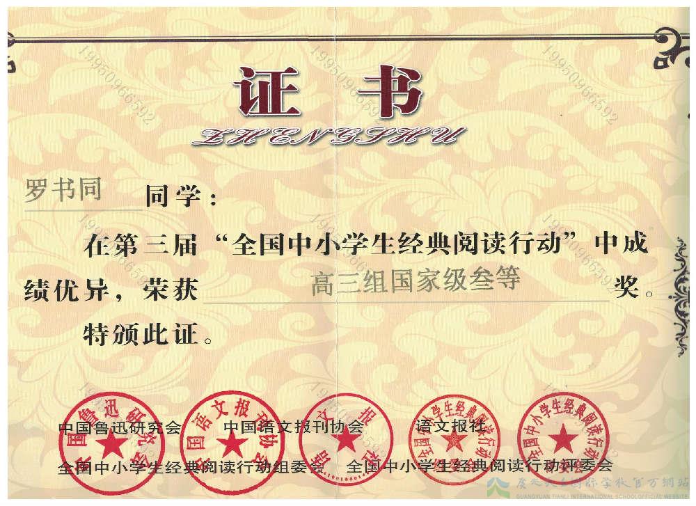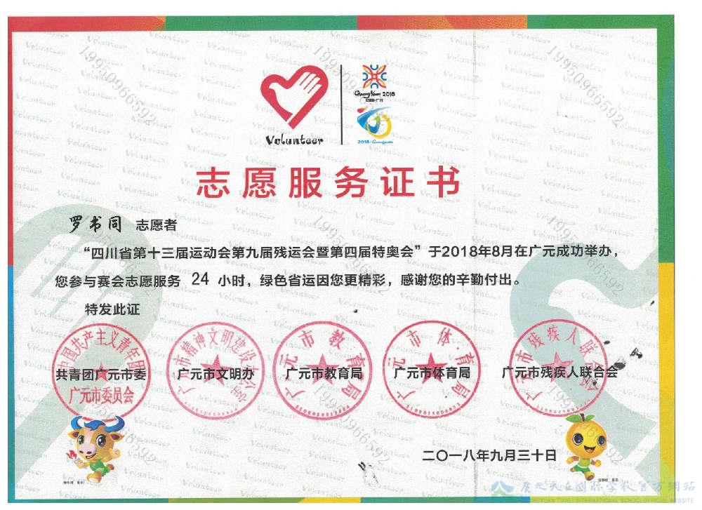 为落实2019年大学自主招生报名条件的要求,现对罗书同报名条件要求证书进行公示: