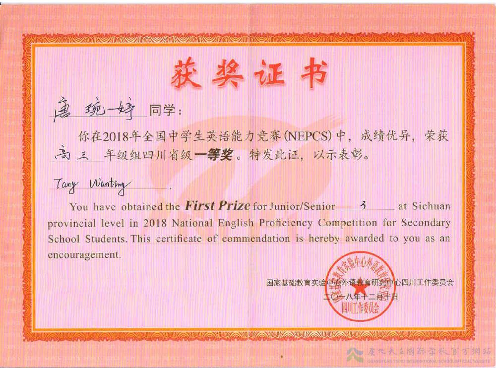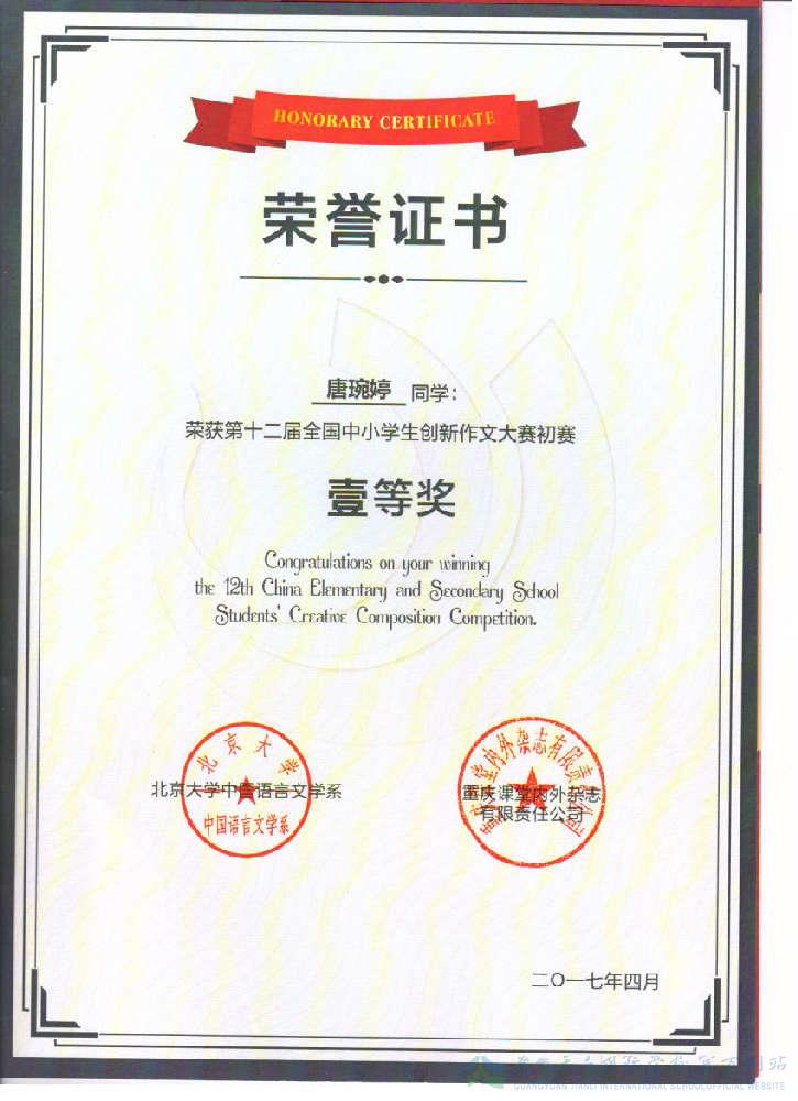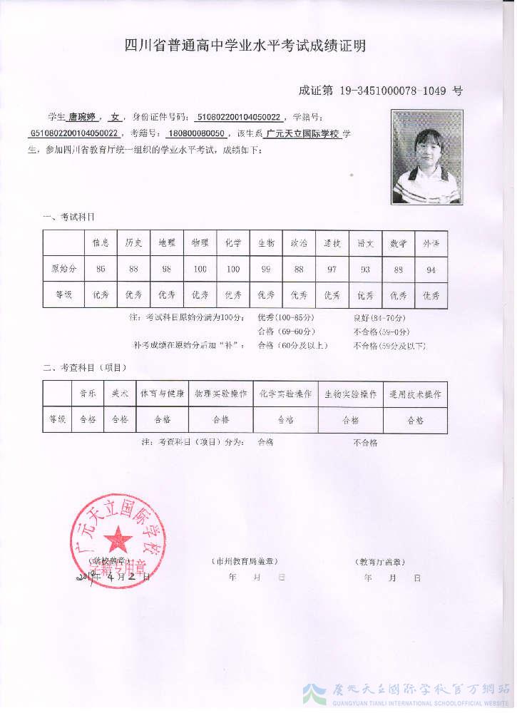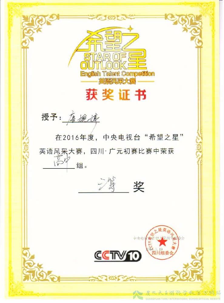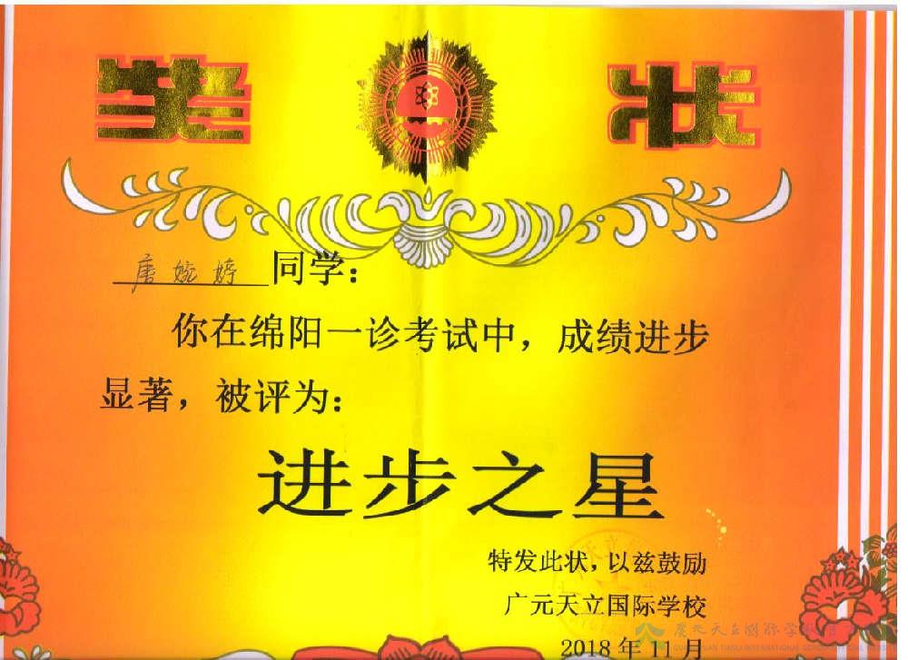 为落实2019年大学自主招生报名条件的要求,现对唐琬婷报名条件要求证书进行公示: