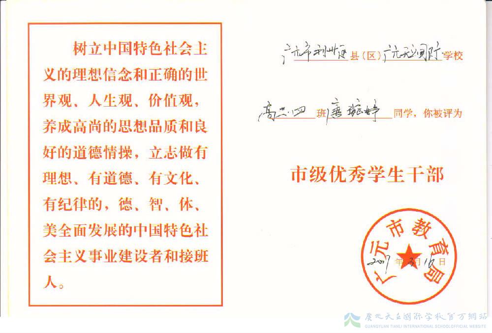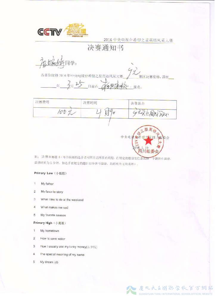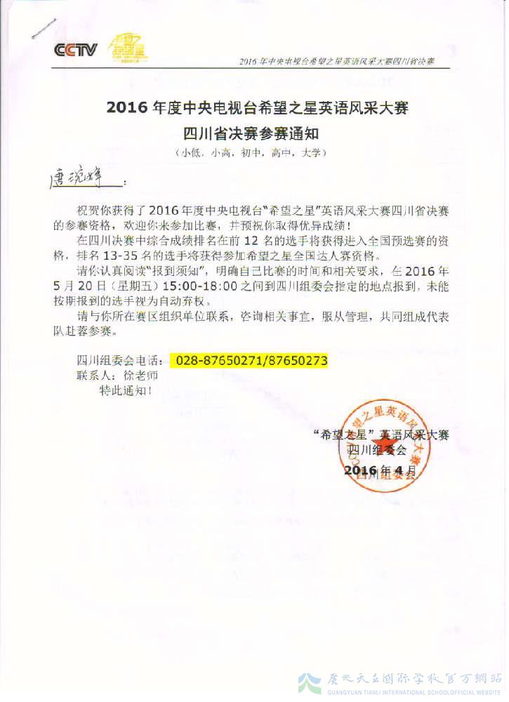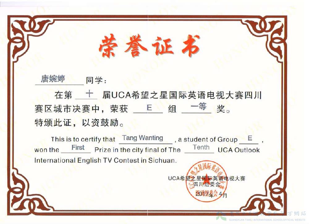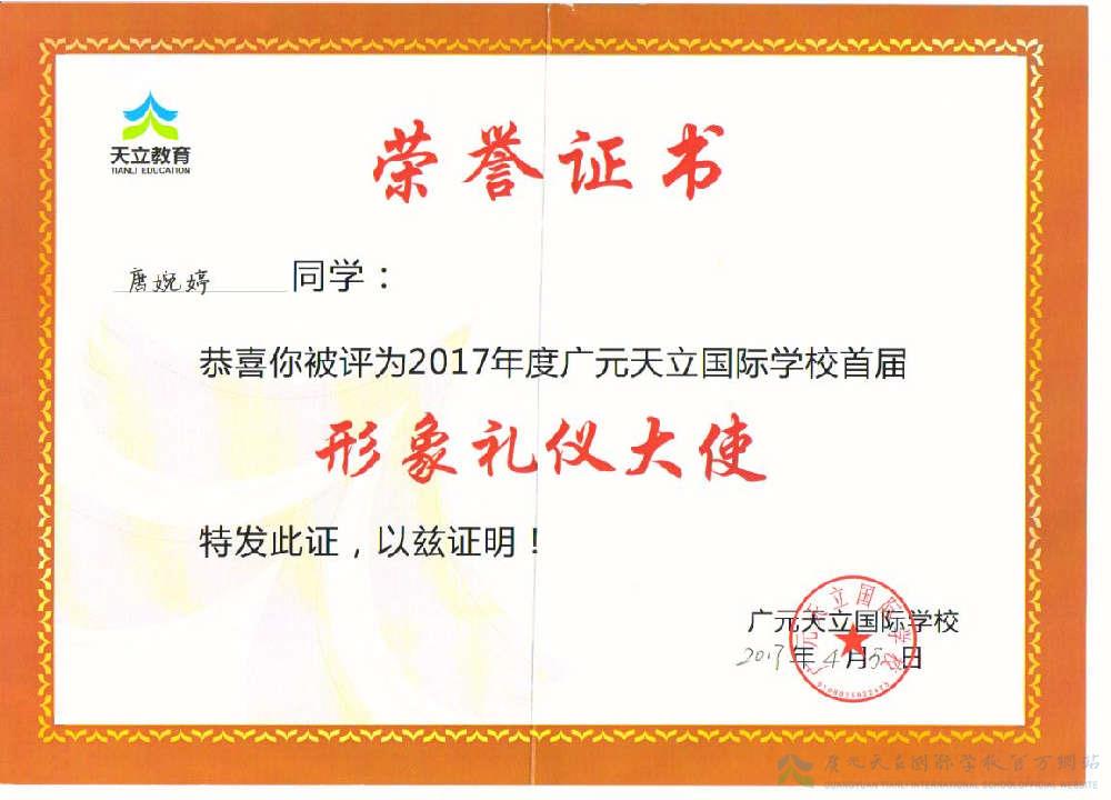为落实2019年大学自主招生报名条件的要求,现对唐琬婷报名条件要求证书进行公示: