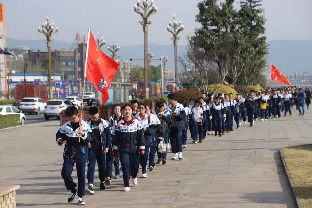广元天立,高中年级,正值风和日丽。浩浩荡荡,势如长龙,队伍有序整齐。骄阳逐清风,黄鹂追柳絮,怒放生机。三五成群,有说有笑,尽嬉戏。