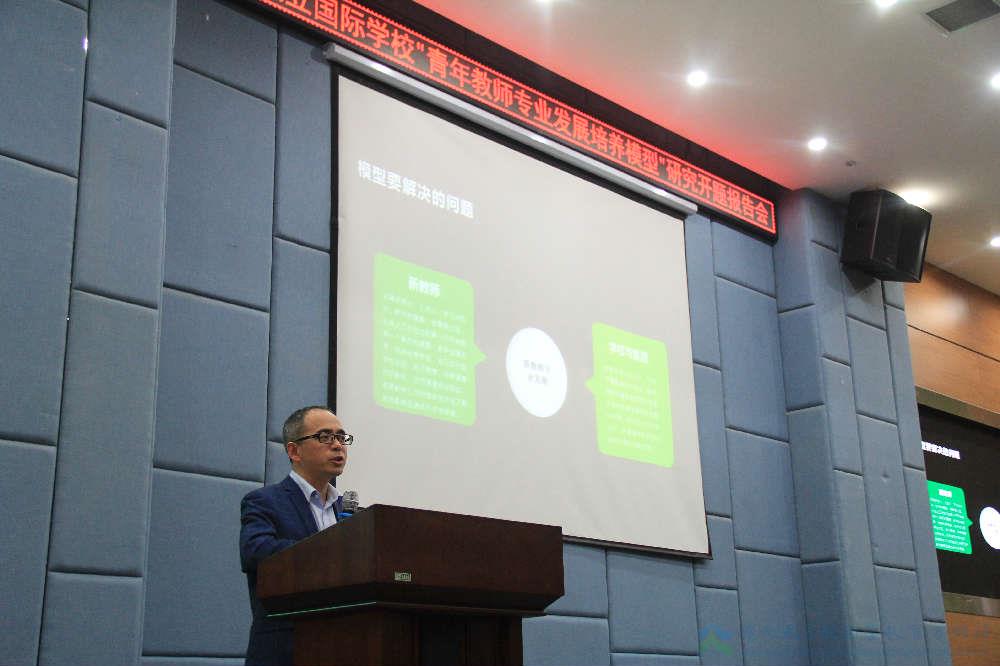 用阅读引领,以儒雅知名的舒凯老师,代表课题研究小组对本次开题进行了深入解读。作为集团小学语文名师工作室负责人,舒老师自身的阅读素养及对学生的深远影响向来为人称道。此次报告会上,他同样以阅读为基本,向在座老师解读了我校对新教师专业发展的培养模型,它们分别是专业发展规划模型、专业引领模型、学校助力模型、自我反思模型、团队互助模型。舒老师希望每一位青年教师都能严格自律,把阅读融入日常,让反思成为习惯,在不断地总结中突破难点,提升自我。
