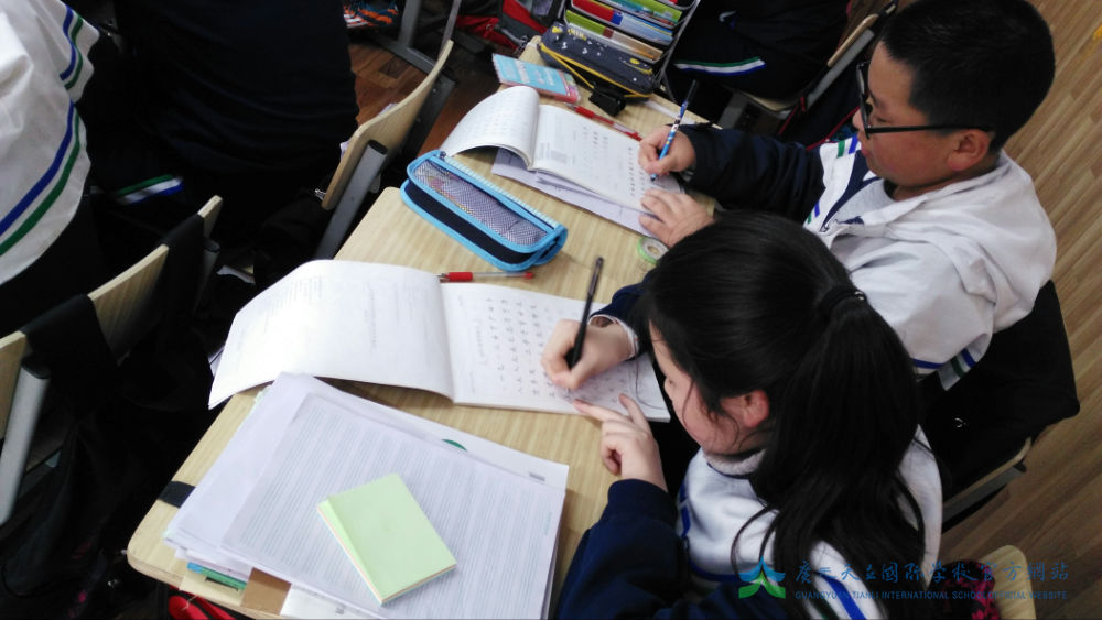 周二,周四分别是语文、英语静心书法时间,听着优雅的轻音乐,孩子们沉浸在书法的世界里。