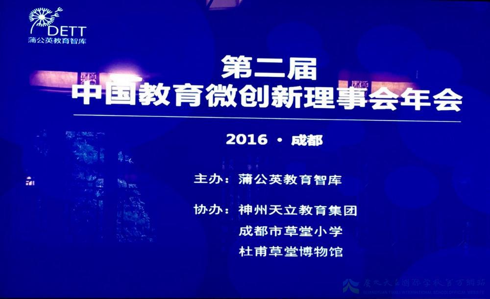 3月26日,第二届中国教育微创新理事单位年会在成都举行,本次年会主题为“社群学习新概念”(如何设计组织在互联网时代的社群学习?关键词为:连结+价值观+内容)。广元天立国际学校小学部俸耀旭校长应邀参加年会并作交流发言,分享了“我在天立”的三个故事。