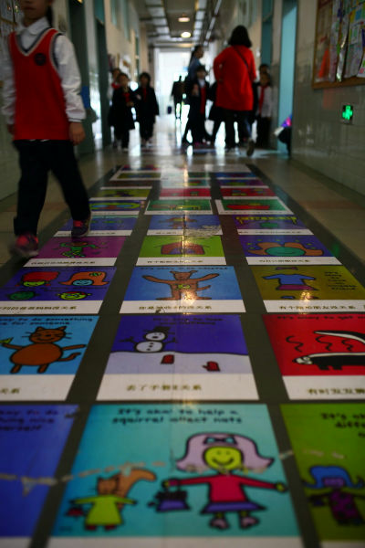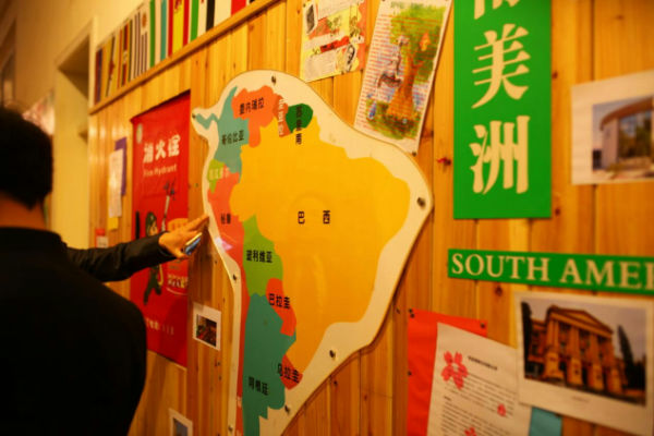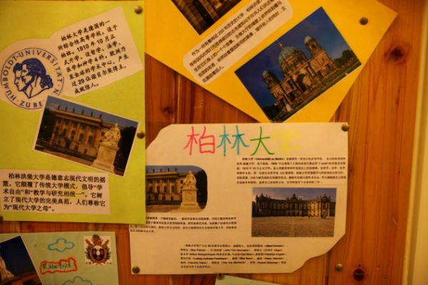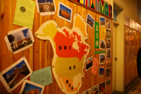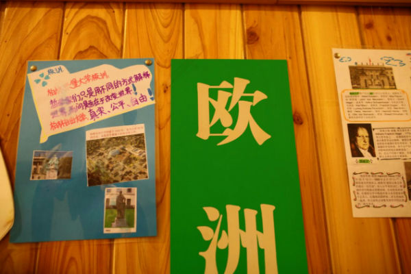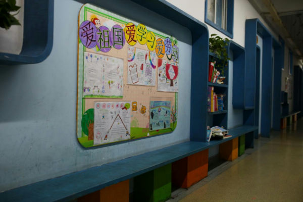 探索世界空间:走廊成为学生认识世界的通道。七大洲,四大洋,学生用各种方式走进世界,学生绘制名牌大学的校训,这些细节必将影响孩子们去梦想,去追求,去实现。