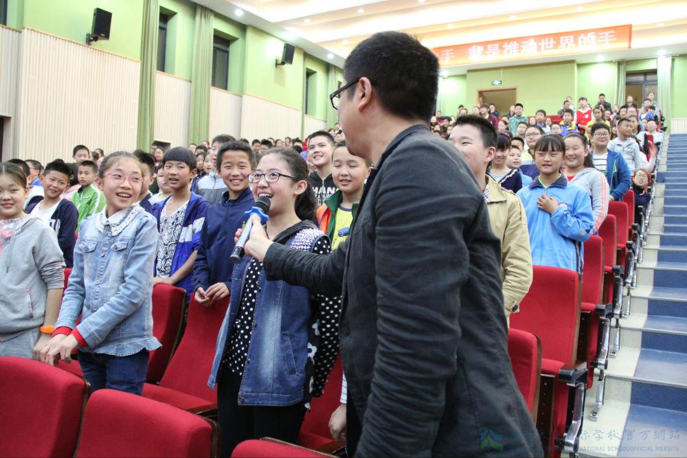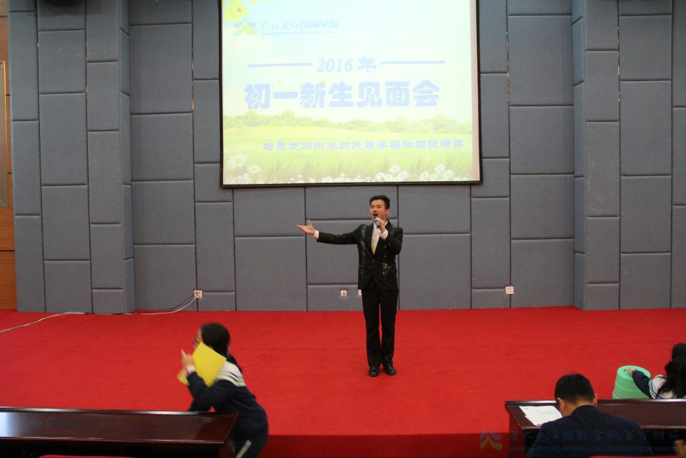 为展现学校的办学特色及教学特色,会上初中部胡柏林校长携手初中部学子为与会家长献上了充满激情的疯狂英语秀,现场家长表示震惊:短短一学期时间,孩子们竟能如此自信、大方地展示自我风采,而他们的英语表达竟如此流利、顺畅,广元天立究竟有什么魔力?而胡柏林校长的现场英语教学更是点燃了在场同学的激情:“Never say die”“I enjoy losing face,I enjoy making mistake”孩子们都用最大的声音表达最深的热爱!20分钟的教学时间虽然短暂,却在孩子心里撒下了热爱英语的种子!