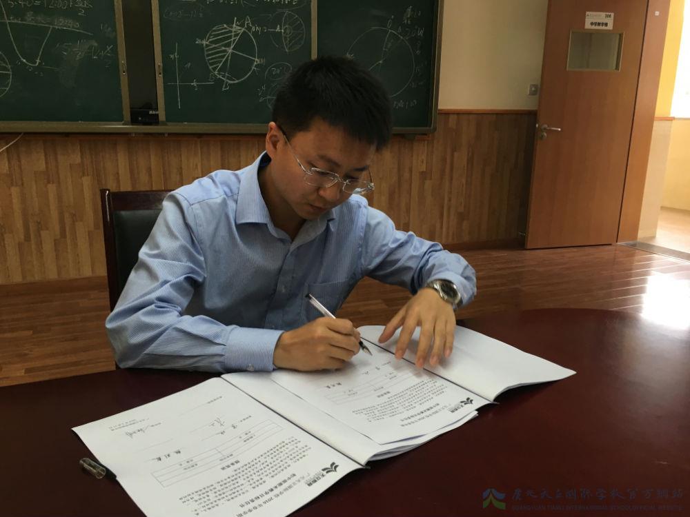 随后,在胡柏林校长、康仕平副校长和盛大森主任的主持下,语数外科学各任课老师在教学质量责任书上签下姓名,承诺年级组、备课组将齐心协力以最大努力提高教学质量,保证完成教学任务。