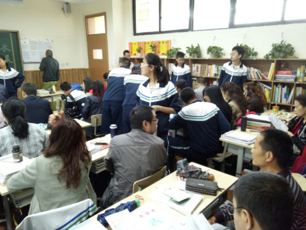 家长们与科任老师进一步交流
