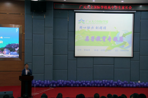 家系温情,亲子之道内外兼修;校育理想,成才之路上下求索。5月14日,继首届体育文化艺术节的顺利落幕,广元天立国际学校高中部再次迎来充实的一天。上午八点半,策划已久的家长会如期举行,这是高一学生自文理分科以来的首次家长会,学校和学部皆对此予以高度的重视。本次集会分为两个部分,前者是高一年级所有家长在学术厅聆听报告,主讲人是学校总校长黄永贵先生以及高中部黄迪定校长;后者是各班的主题座谈,整个过程井然有序,最终取得圆满成功。