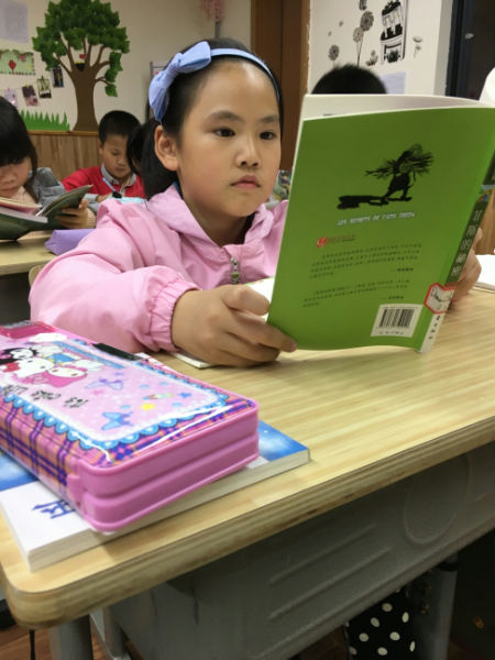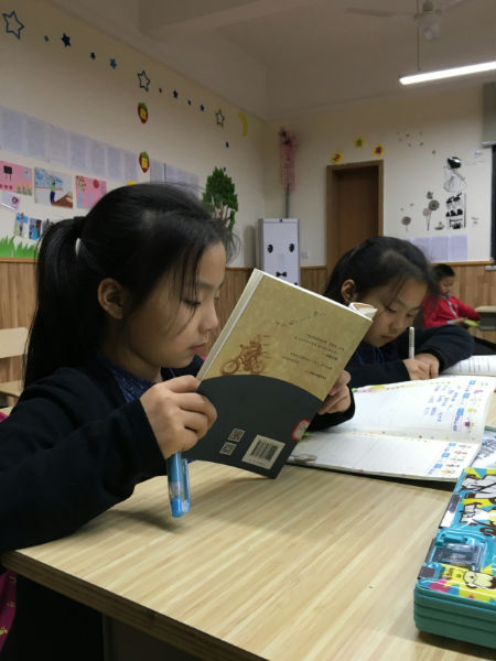 阅读,慢慢的成为了孩子们每日必做之事,每天晚上半个小时的静心阅读,只有一双双渴望的眼睛在汲取书中知识的灵韵。等候打餐、等候排队、等候校车、寝室熄灯之前,都可以看到孩子们手捧书籍,如入无人之境。